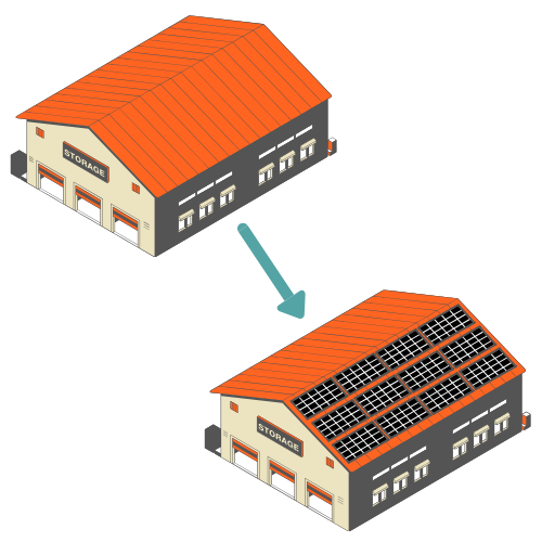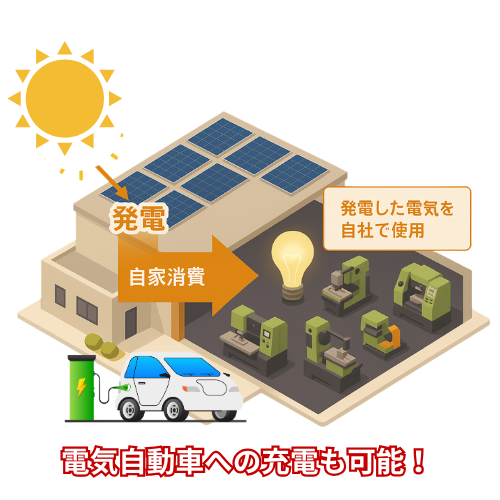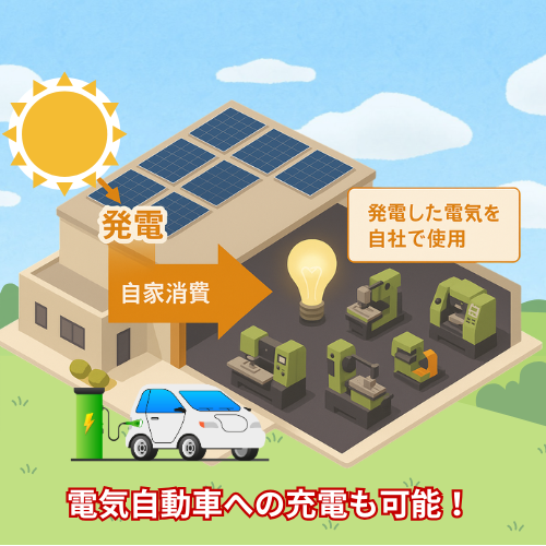 太陽光発電システムを使うことで、お客様の事務所や工場、倉庫などの事業所で使う電気を大きく削減することができます。